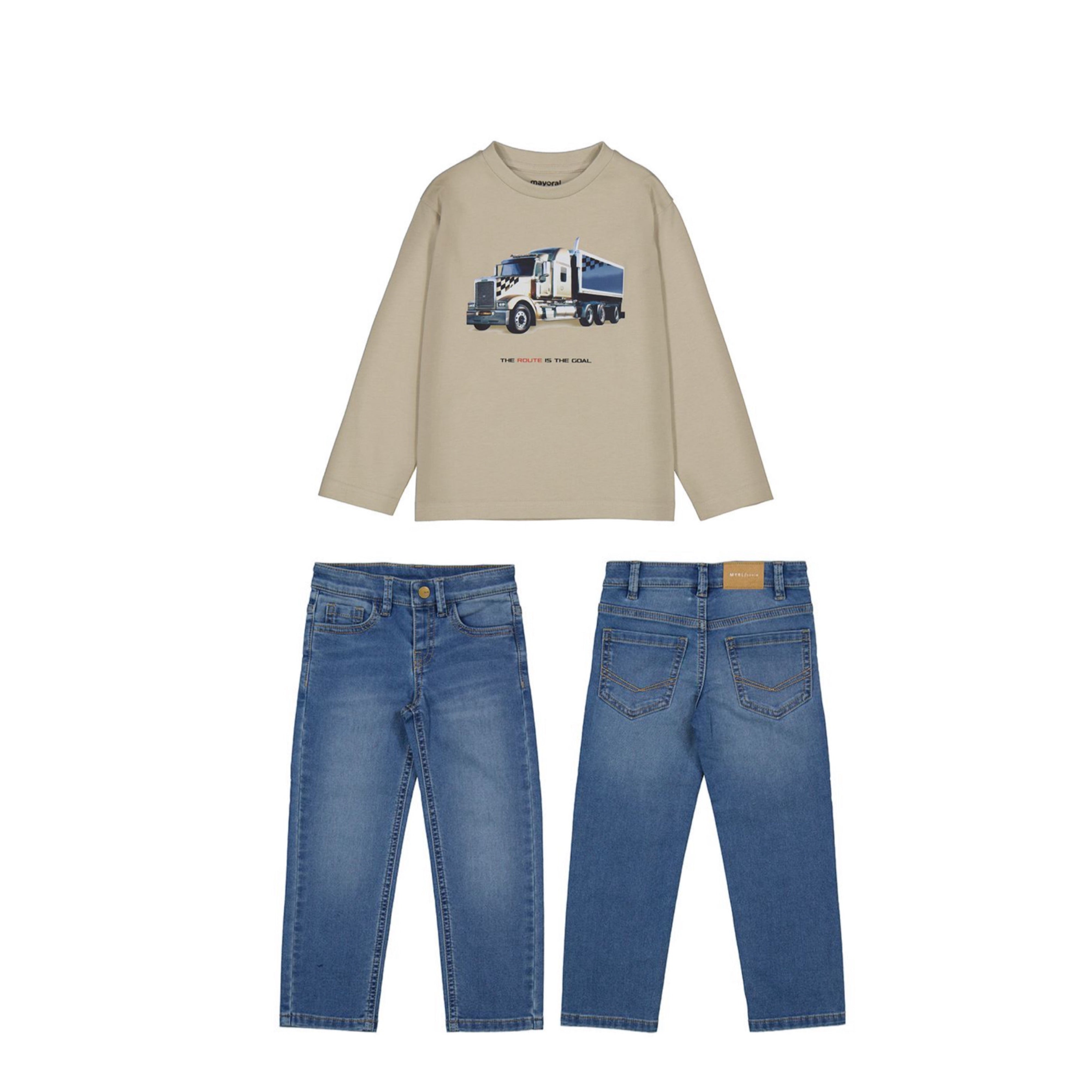 AW25 Mayoral - Truck Print Long Sleeve Top and Jeans Set