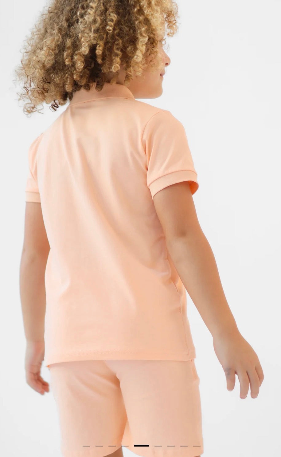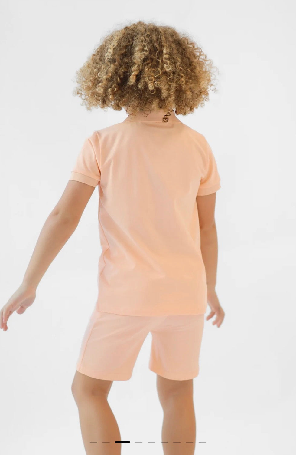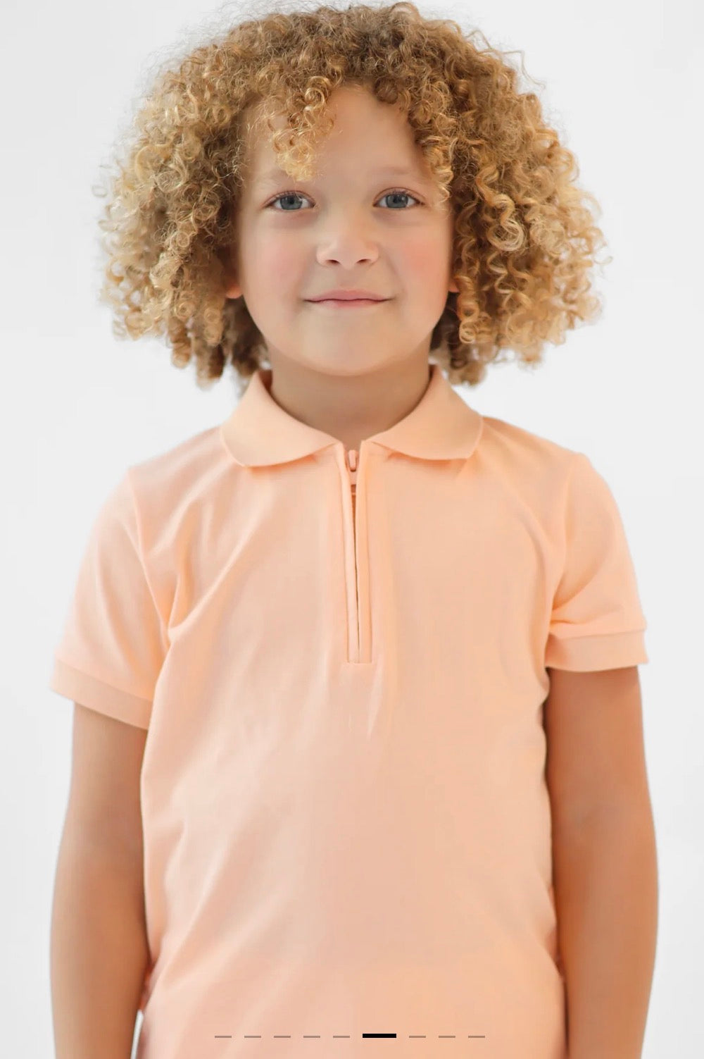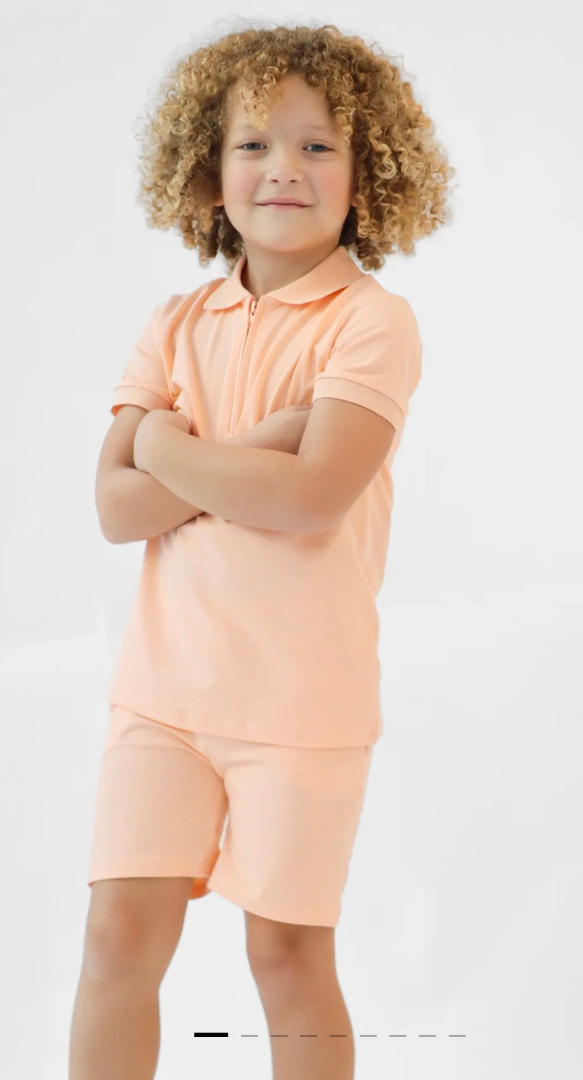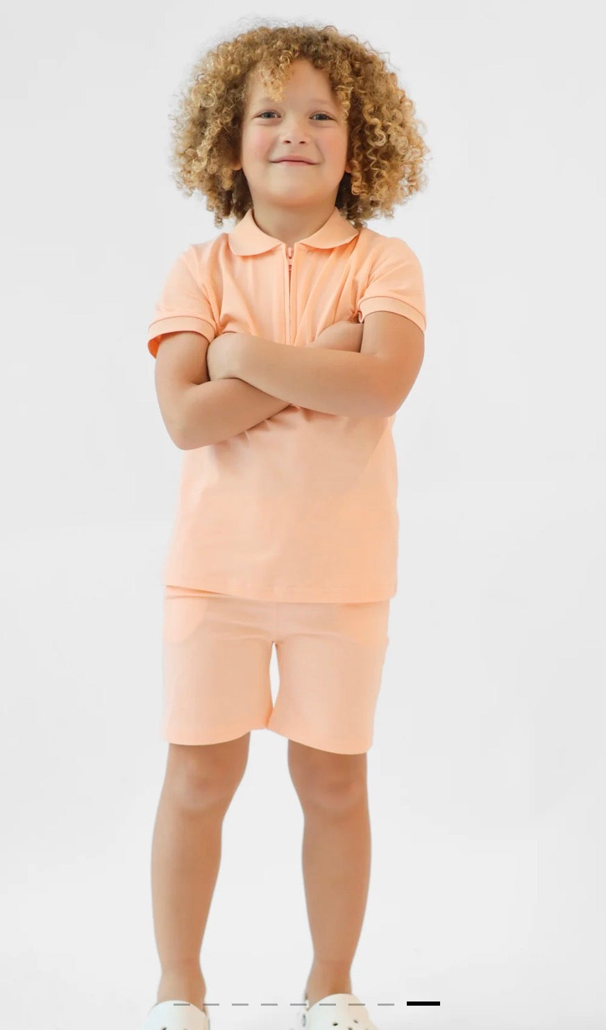 SS26 Harris Kids - Jay Boys Plain Zip Up Polo Short Set Peach