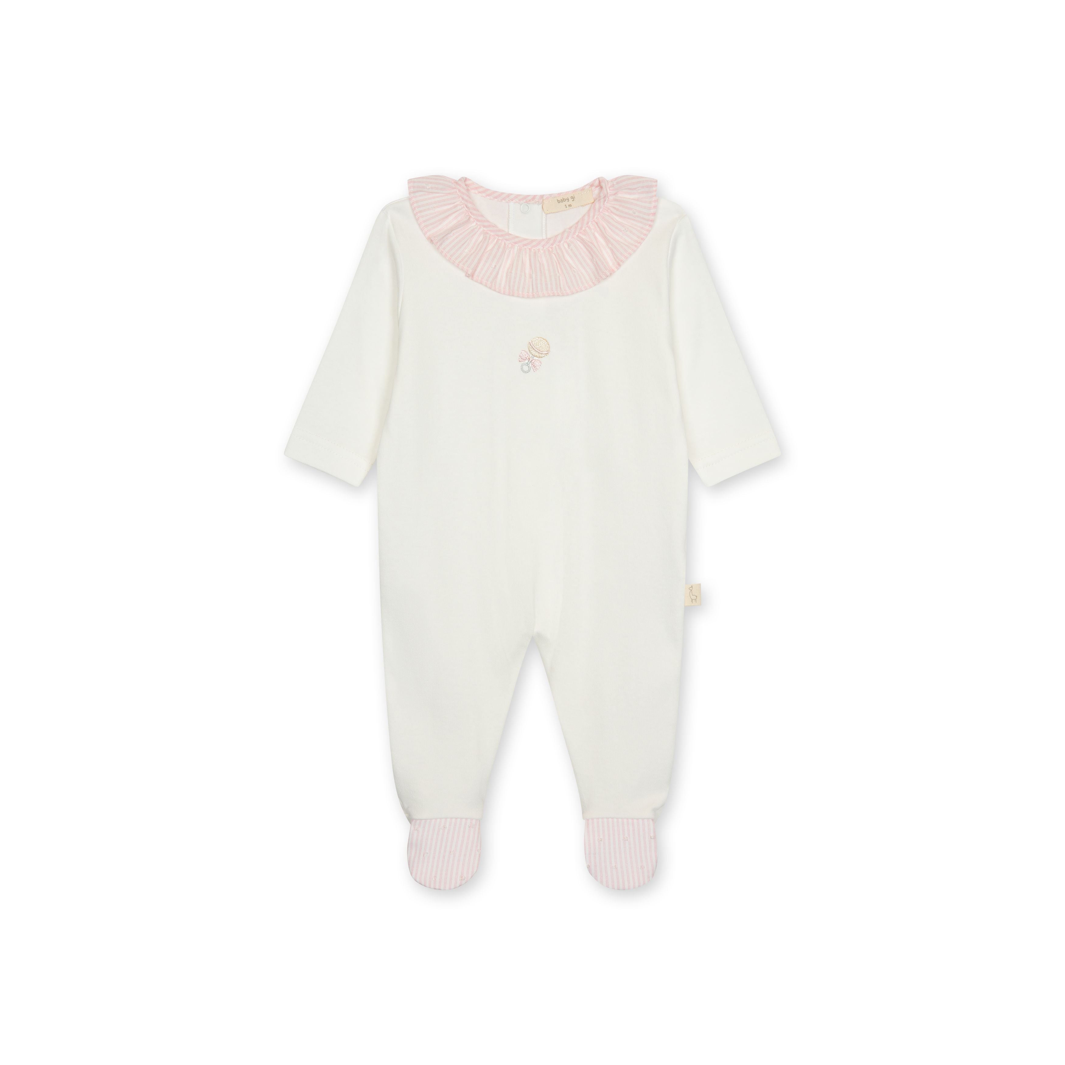 Baby Gi - Rattle Embroidery Ivory & Pink Babygrow