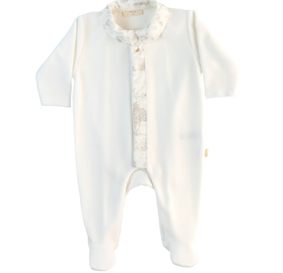 Baby Gi - Country Print Collar Ivory Velour Babygrow