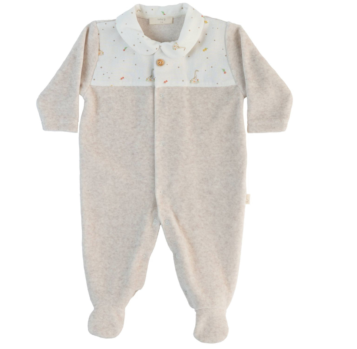 Baby Gi - Goose Peter Pan Collar Beige Velour Babygrow
