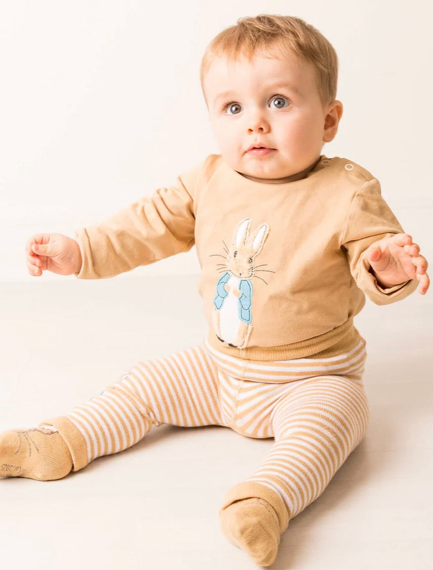 Complete the cosy, coordinated look with these official Peter Rabbit™ socks - designed to pair perfectly with the rest of the neutral collection. In a soft beige/oatmeal tone, these socks feature a discreet Peter Rabbit™ motif and ribbed cuffs to keep them snug through every crawl, toddle, and leap!