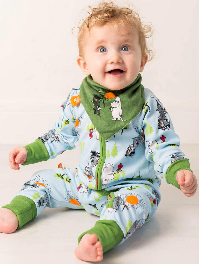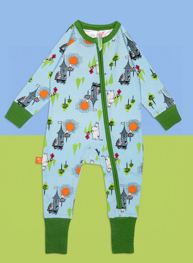 Our romper is destined to delight both adults and kids alike. The background is printed with our Moomins™ Free To Explore design, and is a must for all little ones!
