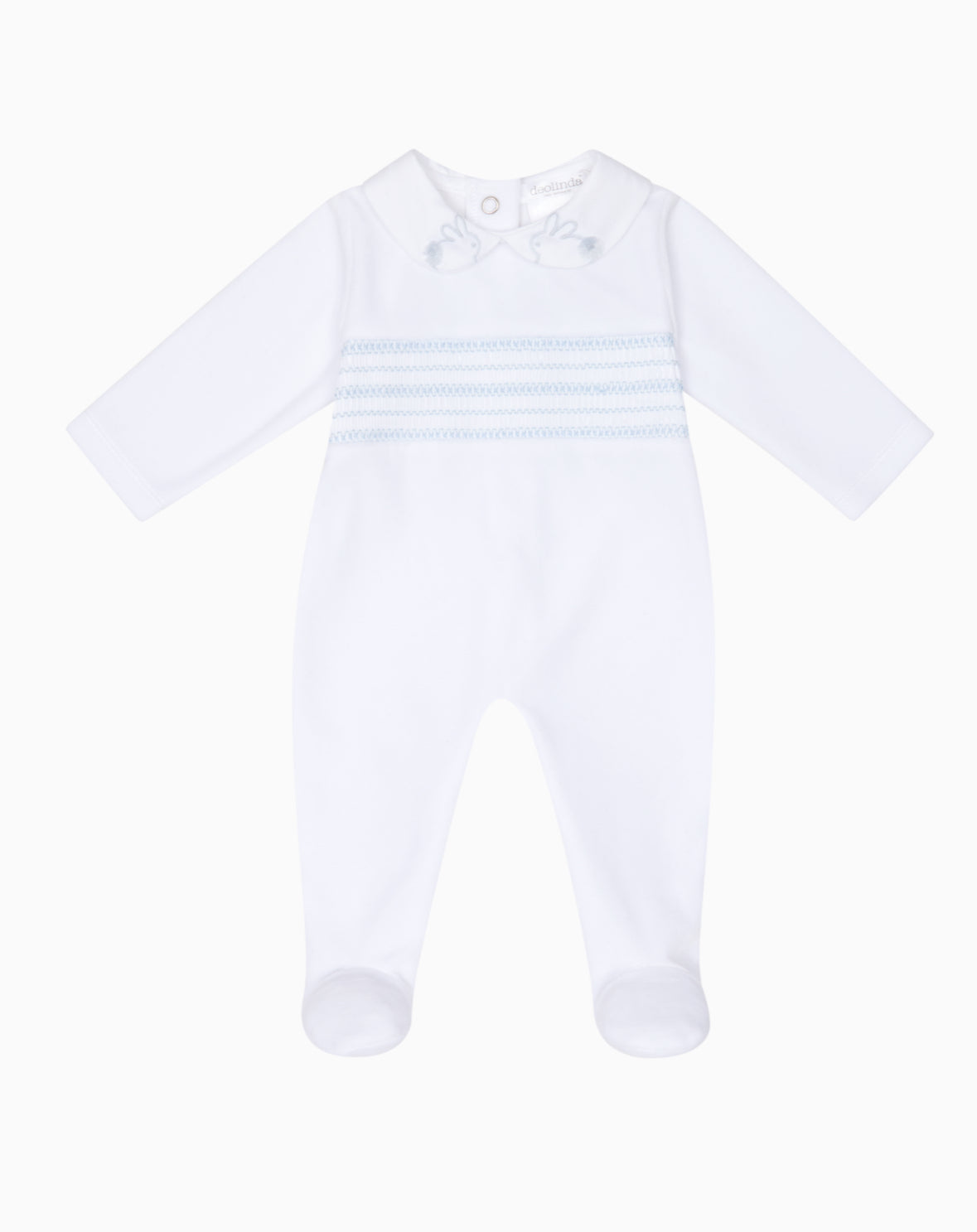 AW25 Deolinda - White and Blue Smocked Babygrow