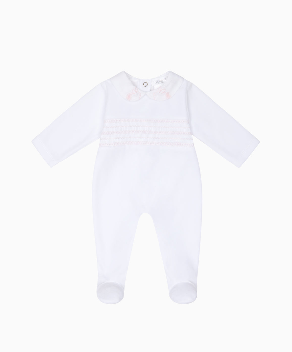 AW25 Deolinda - White and Pink Smocked Babygrow