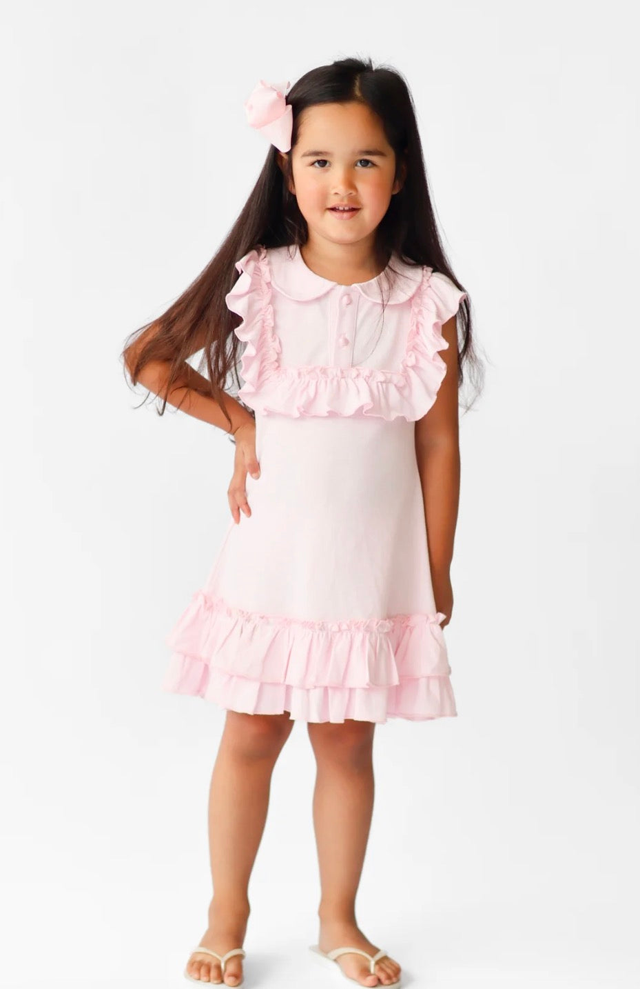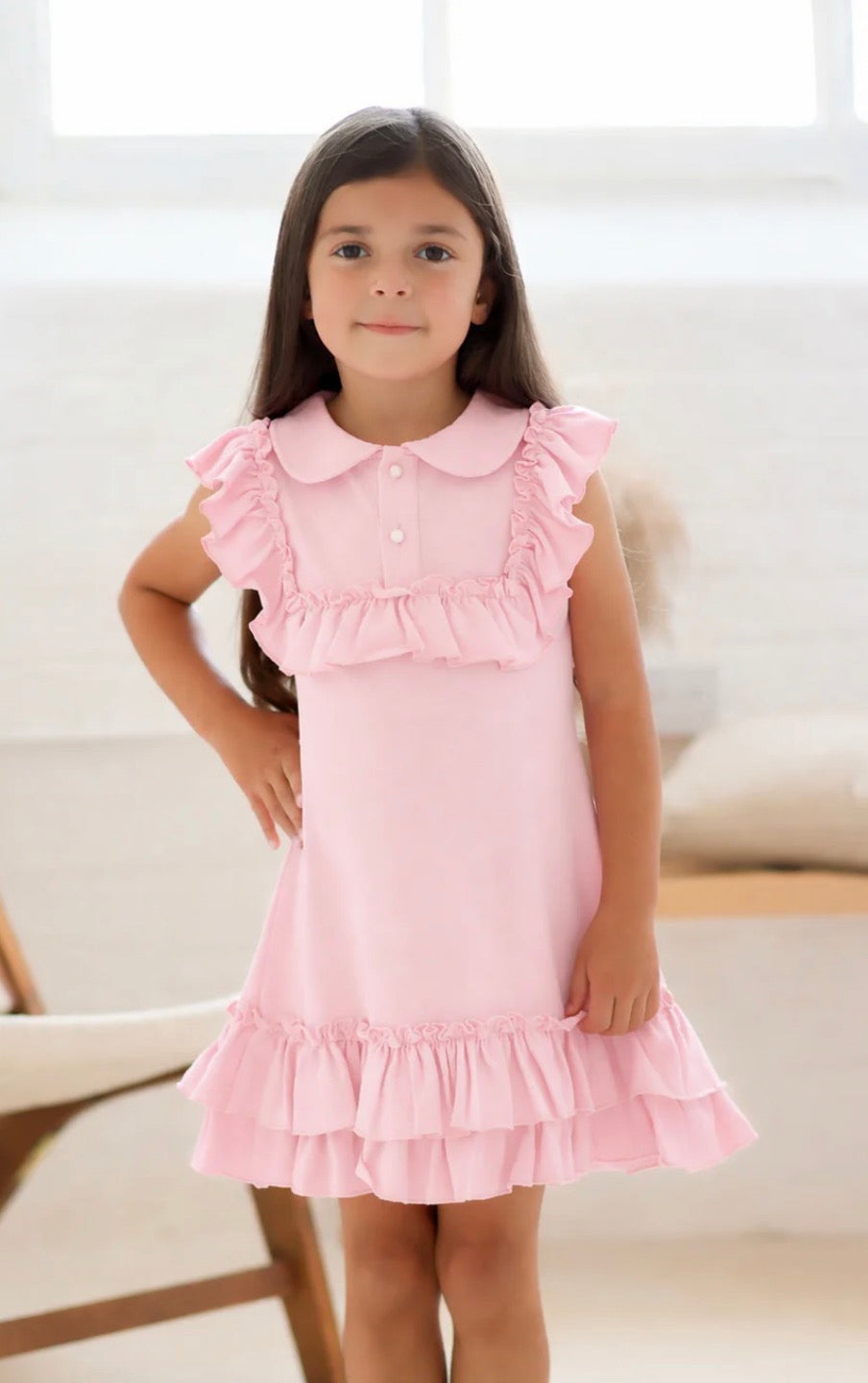 SS26 Harris Kids - Ellie Girls Frilly Ruffle Polo Dress Pink