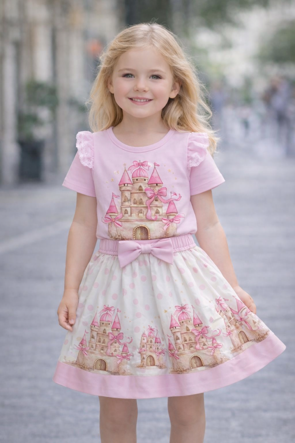 Pink Castle Print Skirt Set