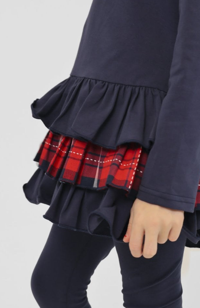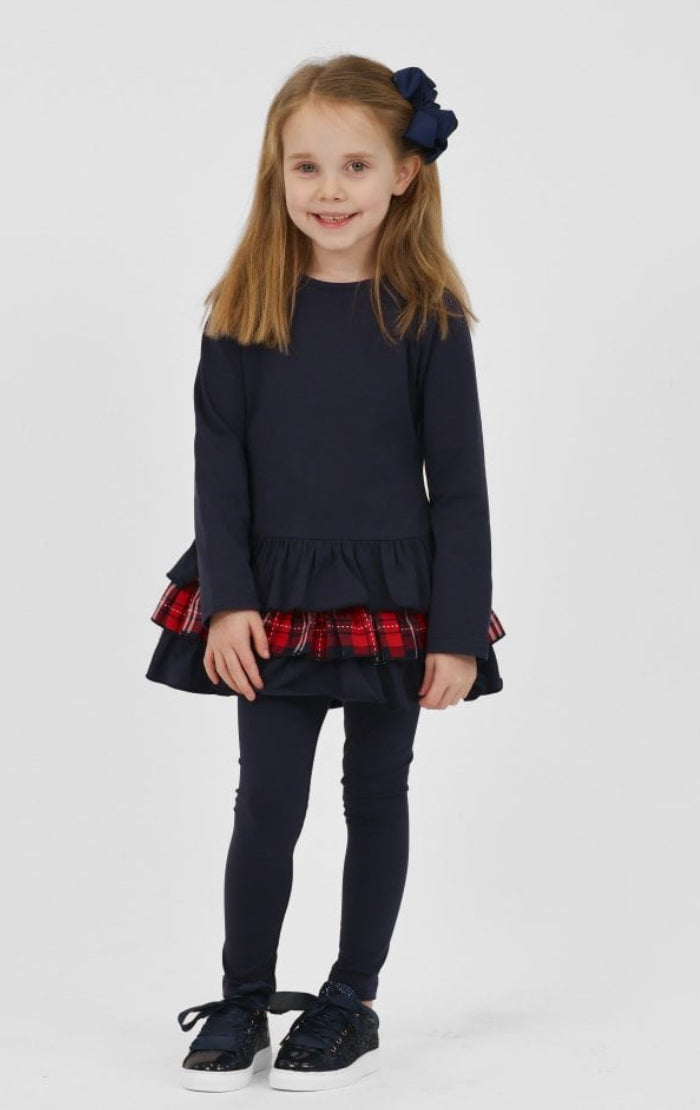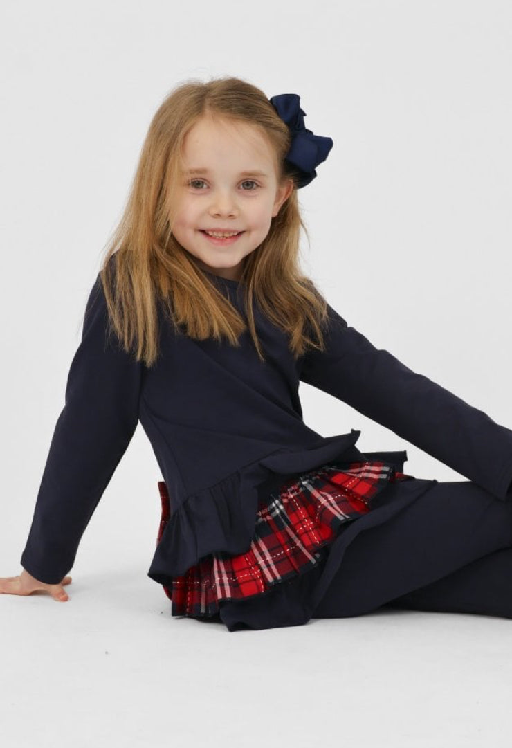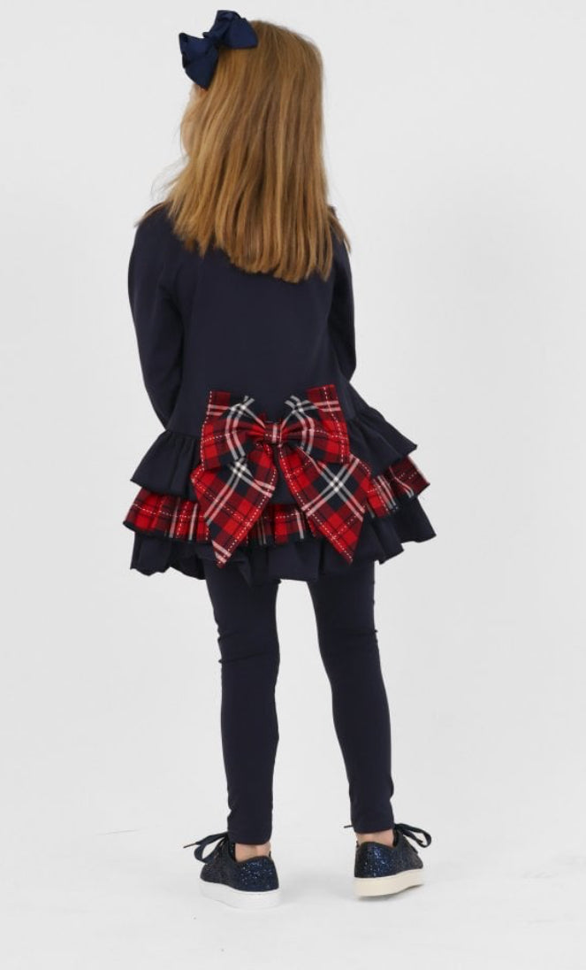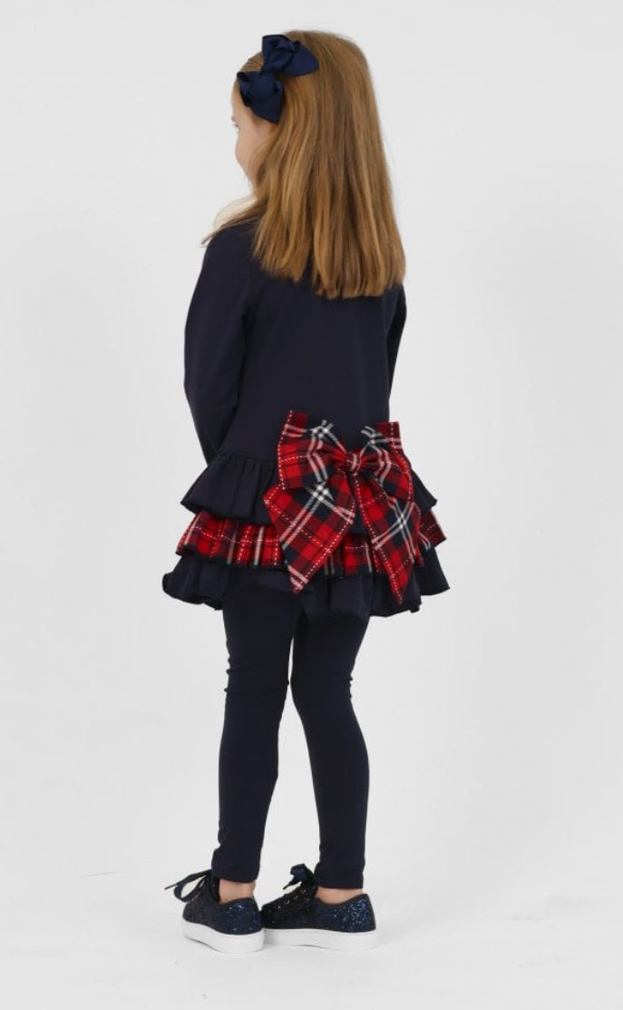 AW25 Harris kids - Darcy Frill Tartan Bow Legging Tracksuit Set Navy