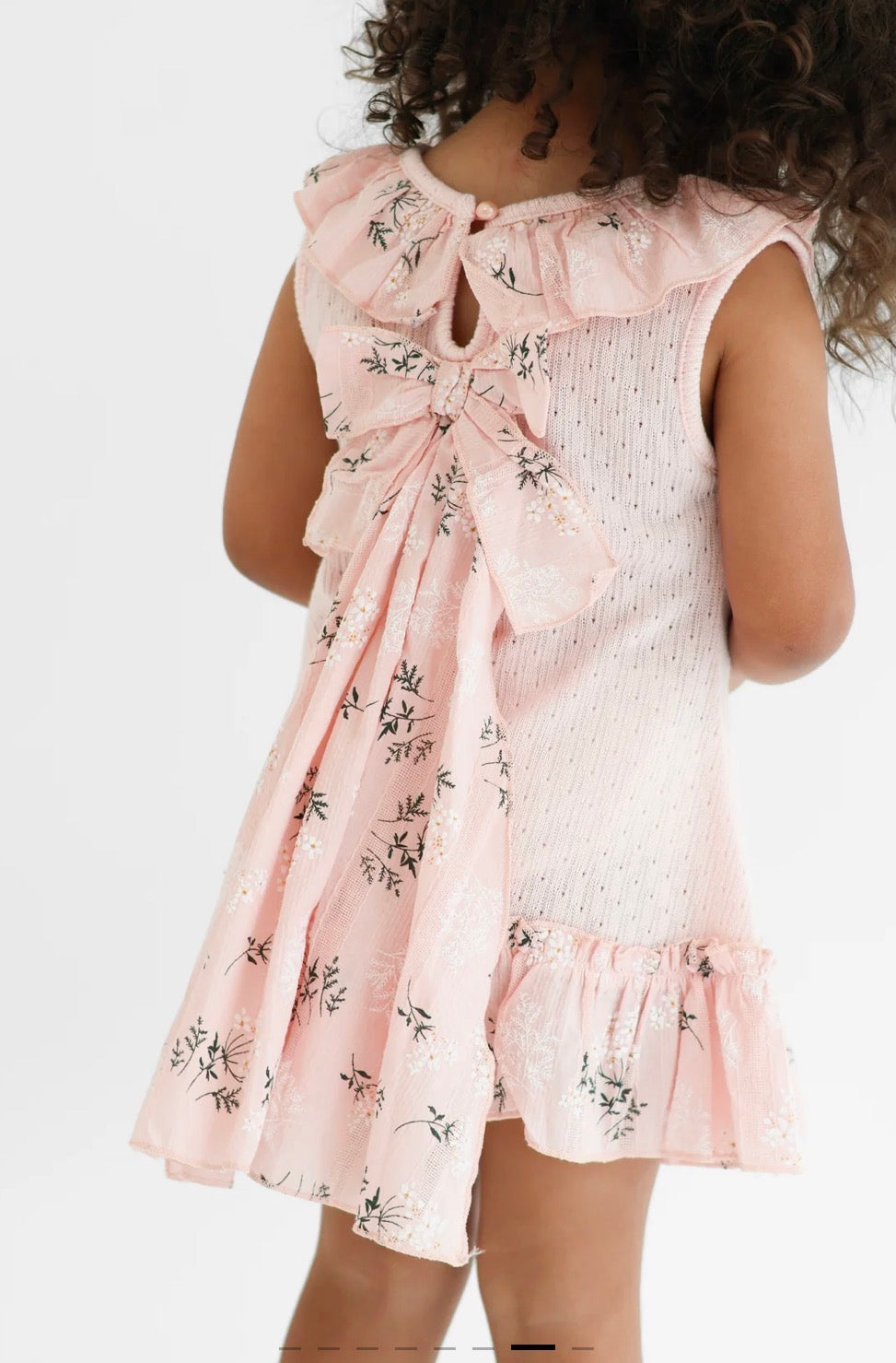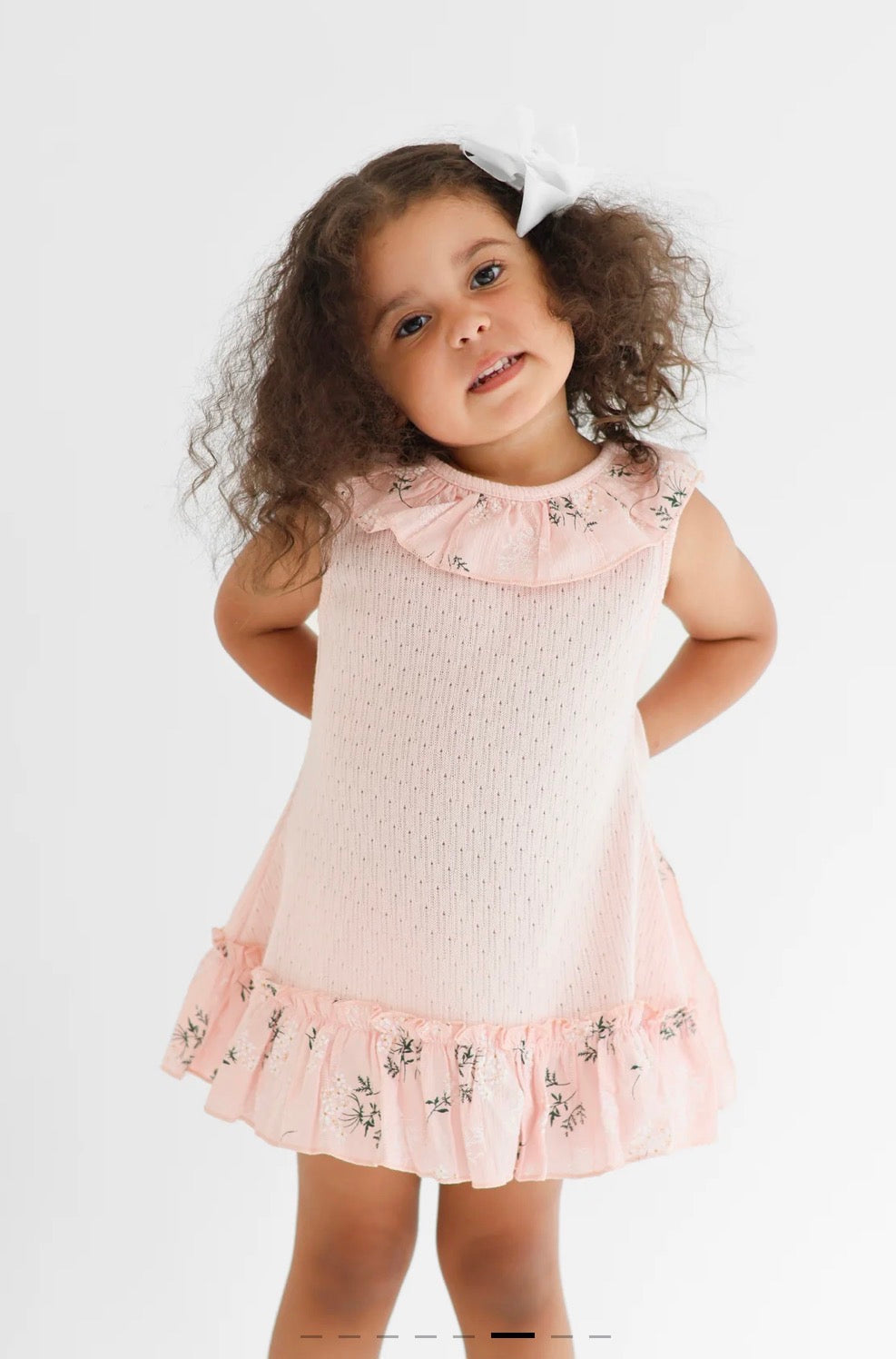 SS26 Harris Kids - Eliza Girls Pink Knit Floral Bow Dress