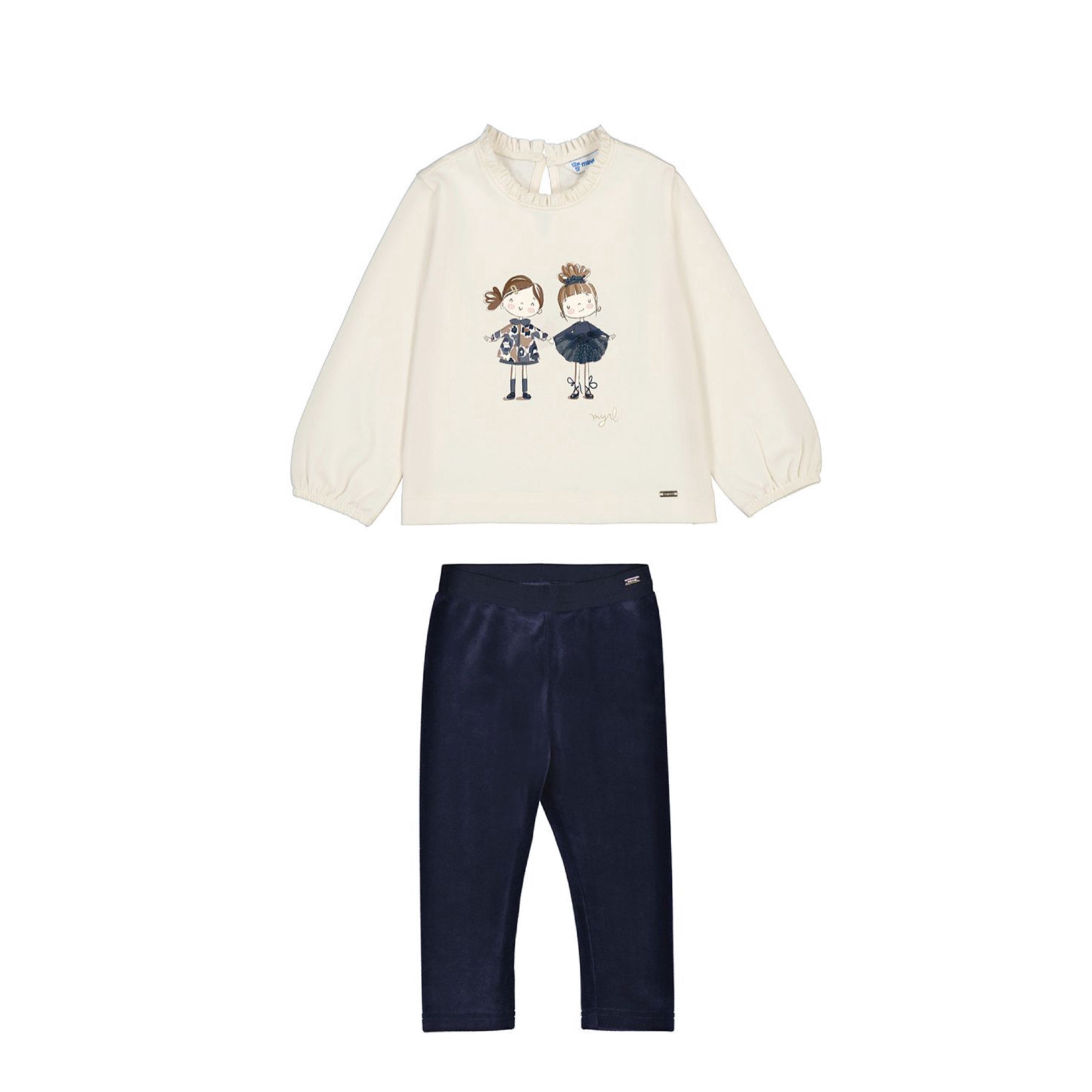 AW25 Mayoral - Print Long Sleeve Top and Navy Velour Legging Set