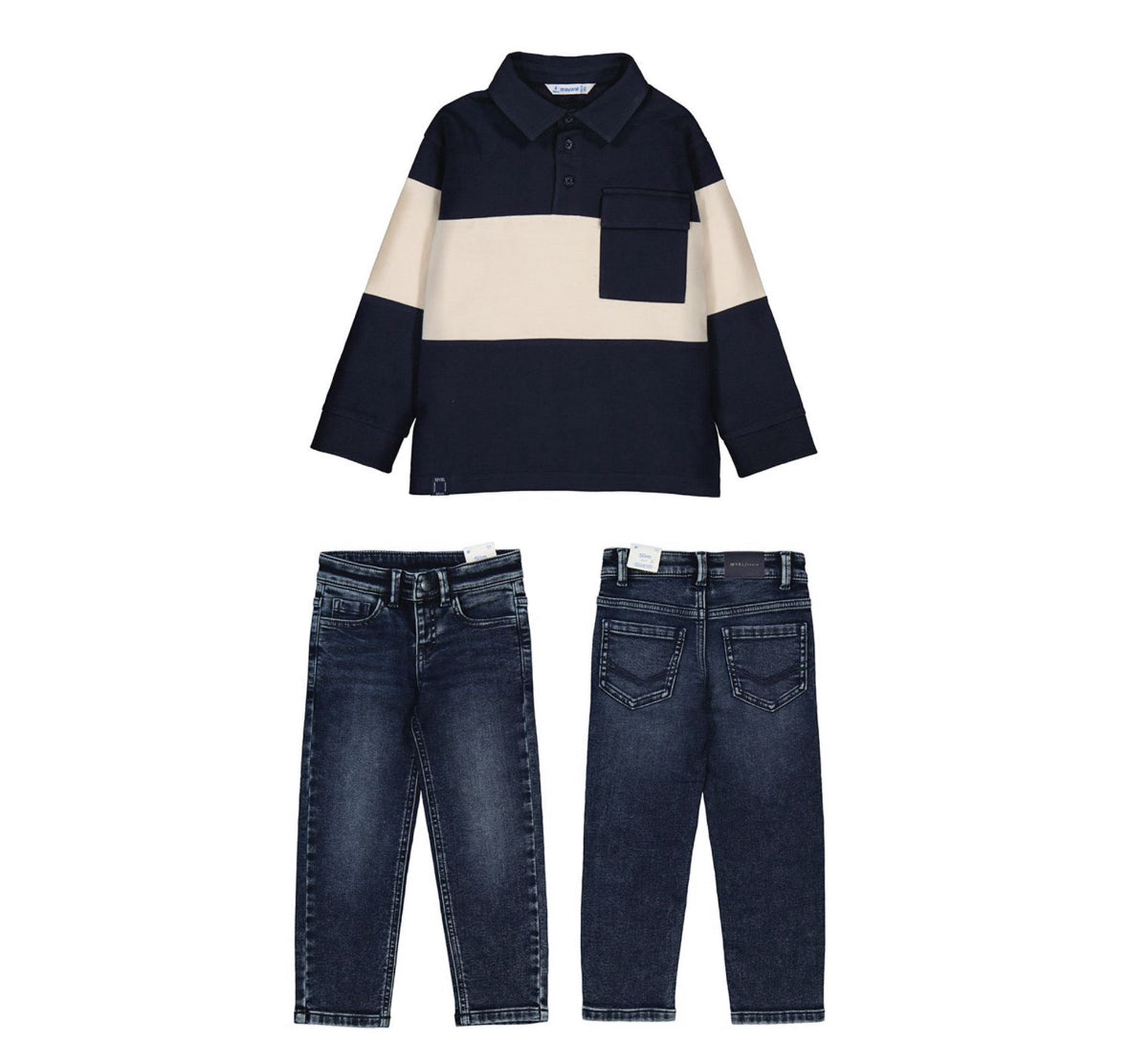 AW25 Mayoral - Navy Polo Jumper and Jeans Set